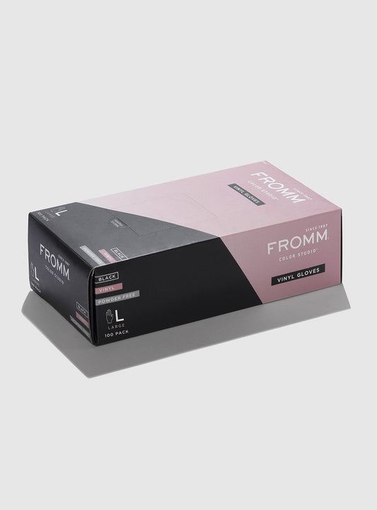 FROMM BLACK VINYL POWDER FREE GLOVES - 100 PACK