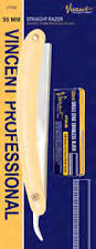 58MM Single edge straight razor VT302 uses standard 58MM (2 ¼”) blades, rust and tarnish resistant ivory plastic confort handle Iincludes 10 Vincent 58MM single edge blades (VT302B)